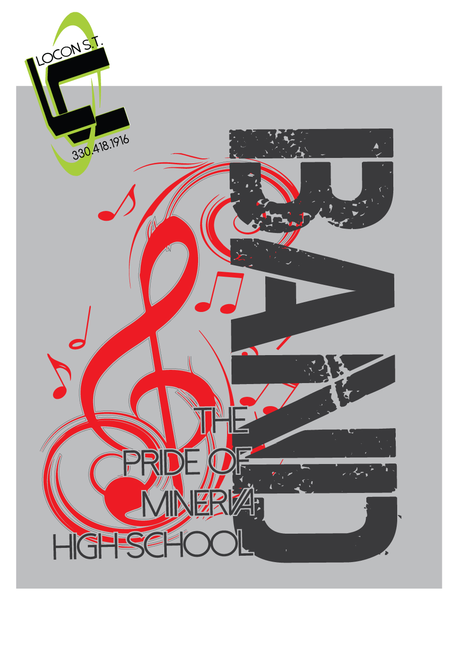 The band is currently conducting a fundraiser selling Pride Of Minerva shirts. Pricing is T-Shirts for $15, Long Sleeves Shirts $19, and Hoodies $25. Add $2 for 2XL and 3XL. Add $3 to personalize name on Back. Make checks payable to “LoCon Sports”. See a band member to place your order. Please have all orders placed by November 13th.